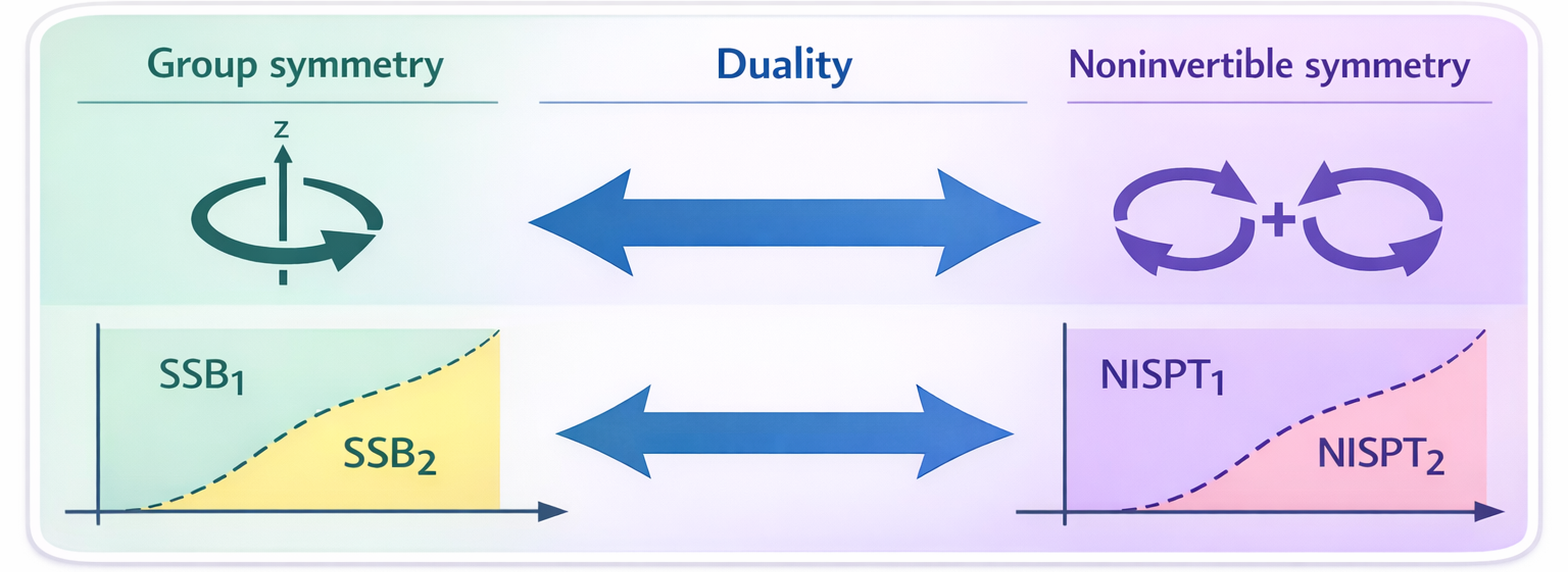 本研究では、双対変換を用いることで、非可逆対称性を持つSPT相という難解な問題を、「従来の対称性が自発的に破れる相(SSB相)」という、よく知られた物理現象の問題に既存の理論で扱える形に変換できることを示しました。これにより、任意の次元における非可逆対称性を持つSPT相の分類が可能となり、さらに具体的な模型の構成にも成功しました。先行研究と比較して、本研究の新規性は大きく二点あります。複雑な非可逆対称性の問題を従来の物理学の言葉で直観的に理解可能にした点、および任意の次元での分類を与えた点に新規性があり、この研究成果は新たな量子相の探索や量子計算のリソース探究に役立つことが期待されます。